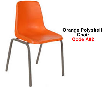 Orange Polyshell ChairCode A02, Available in all colours