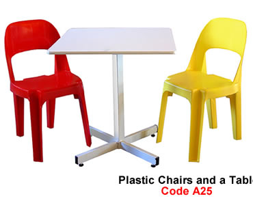 plastic chairs and a table3 Sizes: Junior, Intermediate, Senior.